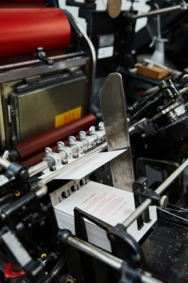 Wir machen Letterpress — dabei drucken unsere Druckpressen mit viel Kraft die Farbe auf und in das Papier und erzeugen so ein sicht- und fühlbares Relief im Material.