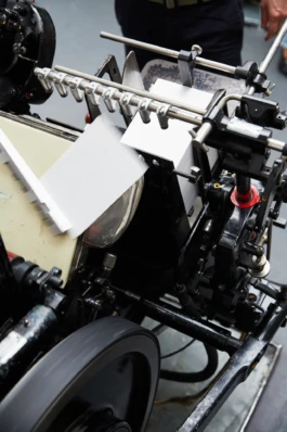 Mit unseren vier Heidelberger Tiegeln und unserer Korrex-Andruckpresse veredeln wir hochwertige Papiere, in flexiblen Formaten und Auflagen, von mini bis Maxi — immer mit hohem kreativen Anspruch